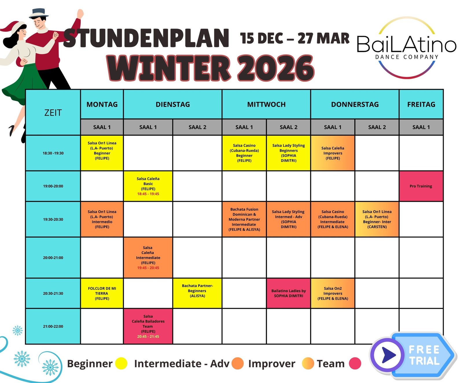 Entfesseln Sie die Freude an Salsa ganz bequem von zu Hause aus mit dem umfassenden Online-Kurs der Bailatino Dance Company. Fachkundig gestaltet, deckt dieses Programm zwei Salsa-Stile ab: Salsa Caleña (kolumbianische Salsa) und L.A Style On1. Mit 170 detaillierten Lektionen in vier Modulen werden Sie freie Schritte, Paartanz, Drehungen, grundlegende Musiktheorie, Aufwärmroutinen und Übungen zur Körperbeweglichkeit meistern. Perfekt für Anfänger und fortgeschrittene Tänzer gleichermaßen, bietet unser Online-Kurs eine flexible und unterhaltsame Möglichkeit, Ihre Fähigkeiten zu verbessern oder ein neues, aufregendes Hobby zu finden. Egal, ob Sie Unterhaltung oder eine alternative Form der Bewegung suchen, unser Kurs richtet sich an alle Niveaus und erfordert keine Vorkenntnisse. Beginnen Sie noch heute Ihre Salsa-Reise und tanzen Sie sich zu einem gesünderen, glücklicheren Selbst!